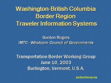 Title: WashingtonBritish Columbia Border Region Traveler Information Systems