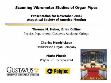 <Notice: Removed> Scanning Vibrometer Studies of Organ Pipes Presentation for November 2003 Acoustical Society of America Meeting PowerPoint PPT Presentation