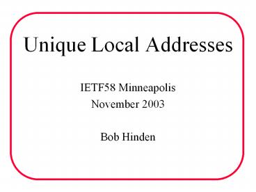 - Current draft is ltdraft-ietf-ipv6-unique-local-