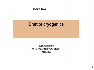 E.Yu.Klimenko RRC Kurchatov Institute Moscow