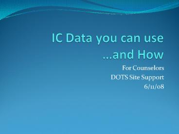<Notice: Removed> IC Data you can use and How PowerPoint PPT Presentation