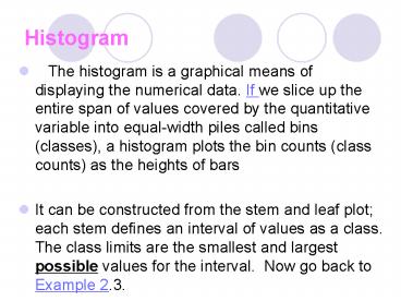 (class counts) as the heights of bars - It can be constructed from the stem and leaf