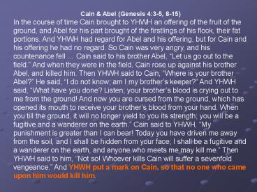 1Cain Abel (Genesis 43-5, 8-15) In the course