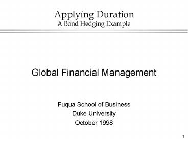 Applying Duration A Bond Hedging Example PowerPoint PPT Presentation