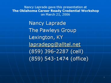1Nancy Laprade gave this presentation at The