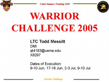 LTC Todd Messitt DMI qt4183_at_usma.edu X8297 Dates