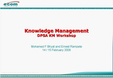 Title: Knowledge Management DPSA KM Workshop