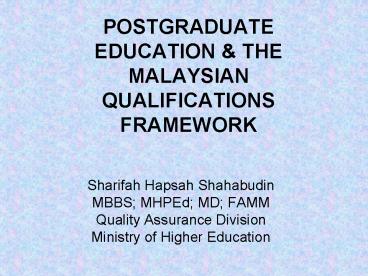 1POSTGRADUATE EDUCATION THE MALAYSIAN