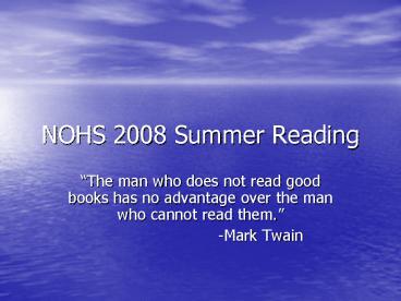 <Notice: Removed> NOHS 2008 Summer Reading PowerPoint PPT Presentation