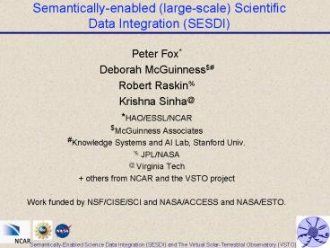 <Notice: Removed> Semanticallyenabled largescale Scientific Data Integration SESDI PowerPoint PPT Presentation