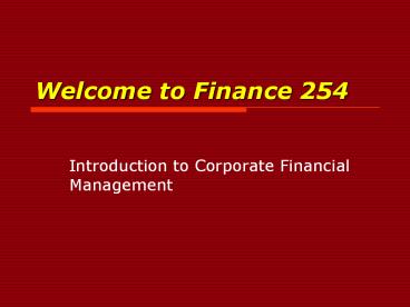 <Notice: Removed> Welcome to Finance 254 PowerPoint PPT Presentation