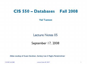 <Notice: Removed> CIS 550 Databases Fall 2008 Val Tannen PowerPoint PPT Presentation