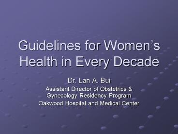 Guidelines for Womens Health in Every Decade PowerPoint PPT Presentation