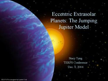 Eccentric Extrasolar Planets: The Jumping Jupiter Model PowerPoint PPT Presentation