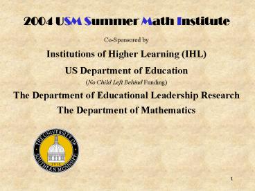2004 USM Summer Math Institute