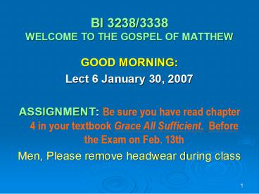 1BI 3238/3338 WELCOME TO THE GOSPEL OF MATTHEW