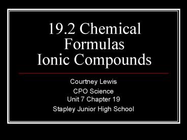 Title: 19'2 Chemical Formulas Ionic Compounds