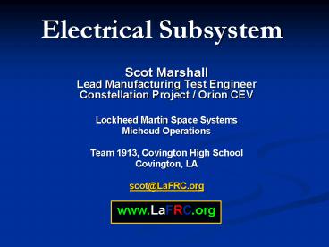 <Notice: Removed> Electrical Subsystem PowerPoint PPT Presentation