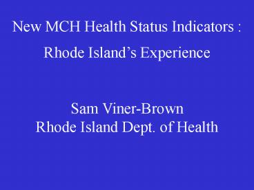 New MCH Health Status Indicators : PowerPoint PPT Presentation