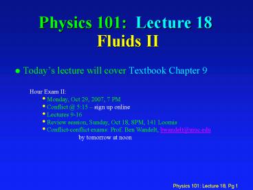 Title: Physics 101: Lecture 18 Fluids II