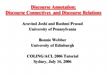 <Notice: Removed> Discourse Annotation: Discourse Connectives and Discourse Relations PowerPoint PPT Presentation