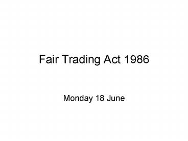 Fair Trading Act 1986 PowerPoint PPT Presentation