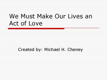 1We Must Make Our Lives an Act of Love