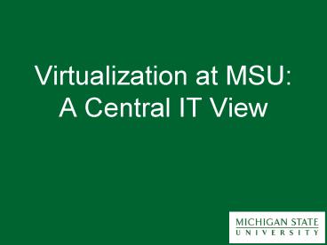 Virtualization at MSU: A Central IT View PowerPoint PPT Presentation
