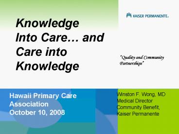 Hawaii Primary Care Association October 10, 2008