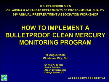 IMPLEMENT A BULLETPROOF CLEAN MERCURY MONITORING