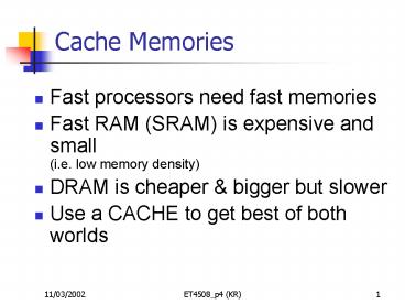 needs to be no more than a few percent - Cache Line a block of data held in the cache