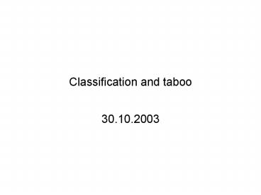 Classification and taboo PowerPoint PPT Presentation