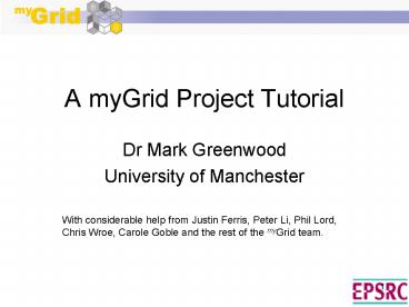 Title: A myGrid Project Tutorial