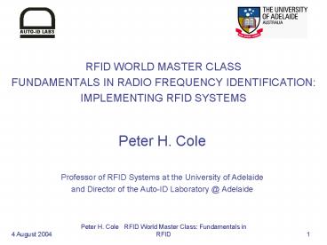 Peter H. Cole Professor of RFID Systems at the