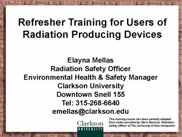 1Refresher Training for Users of Radiation