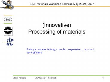 - SRF materials Workshop Fermilab May 23-24, 2007