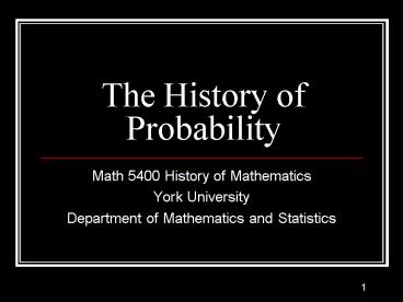 analysis of them? - The Problem of Points appeared in print in 1494,