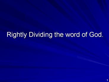 Title: Rightly Dividing the word of God'