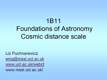 Title: 1B11 Foundations of Astronomy Cosmic distance scale
