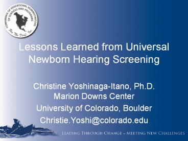 Title: Lessons Learned from Universal Newborn Hearing Screening
