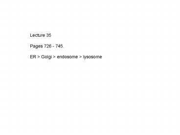 1Lecture 35 Pages 726 - 745. ER gt Golgi gt