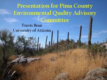 conservation, insurance, tourism, etc.) - Fire Risk Assessment for all of Southern Arizona