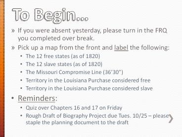 • If you were absent yesterday, please turn in the