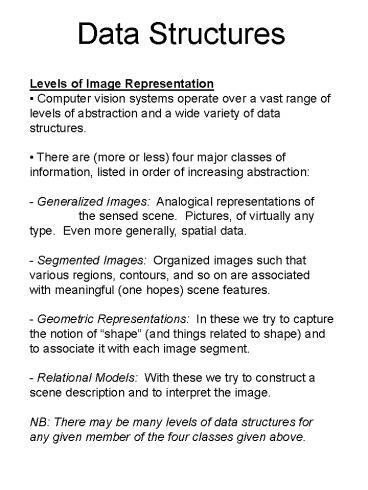 Levels of Image Representation Computer vision