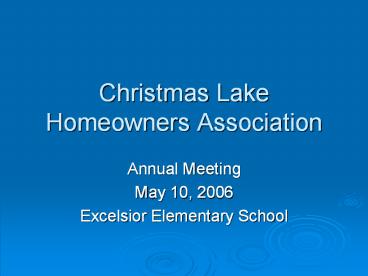 <Notice: Removed> Christmas Lake Homeowners Association PowerPoint PPT Presentation