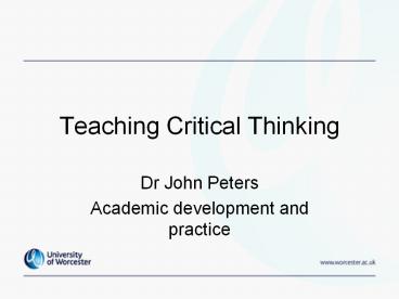 theory for adult learning and teaching, Open UP - Cottrell, S. (2005) Critical thinking skills,
