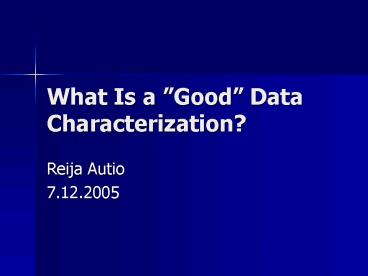 characterization is based are violated badly. - Historically, one of the key motivations for