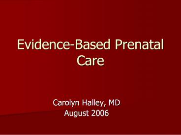 EvidenceBased Prenatal Care PowerPoint PPT Presentation