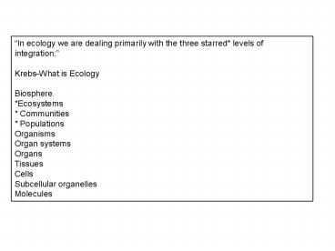 1In ecology we are dealing primarily with the