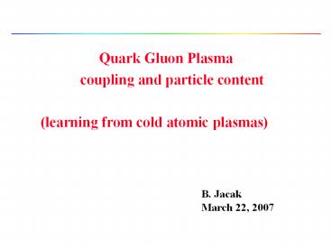 B. Jacak March 22, 2007